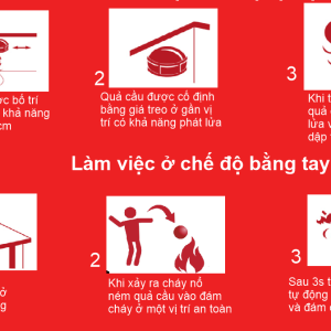 Chế độ tự động: Lắp đặt tại vị trí nguy cơ cháy trong bán kính 10 – 30 cm. Khi có lửa, quả cầu tự động kích hoạt.