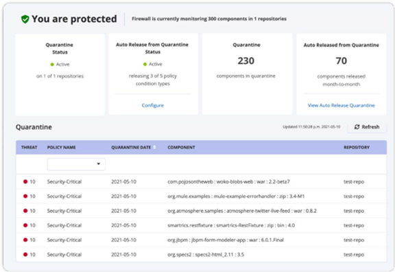 - Quét đa dạng các thành phần: có khả năng quét và phân tích các lỗ hổng bảo mật trong các thư viện mã nguồn mở, các thư viện bên thứ ba, và cả các thành phần đã lỗi thời. Đồng thời hỗ trợ trợ kiểm tra các thành phần, binaries và build artifacts.